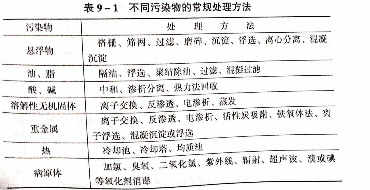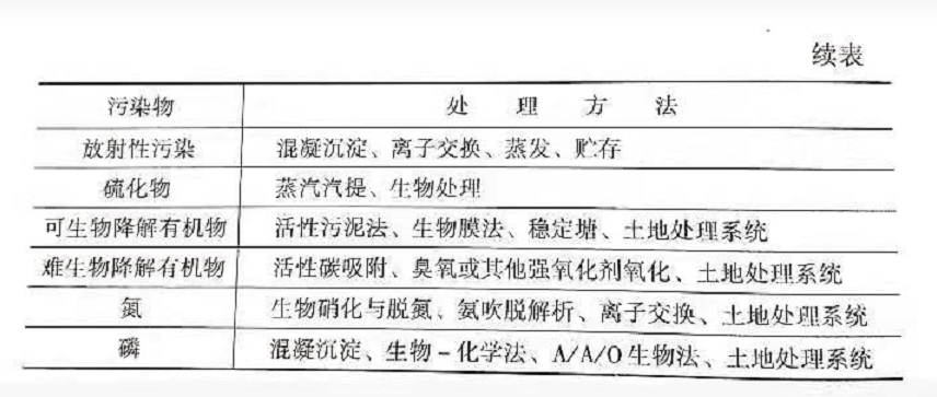 下表列出了針對廢水中的具體污染物成分和通常用的方法。